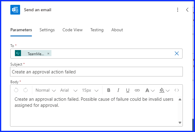 There are some minor changes I recommend making to the flow. First, remove the “Get My Profile (V2)”, second, under the “Create an Approval (V2)” action under advanced parameters, select “Requestor” and choose dynamic content, then select “Team Member Email”. This change ensures the approval request will come from the Team Member provided in the List entry and not necessarily the user who created it. Next, open the “Send an Email” action, then change the “To” field by selecting “Dynamic Content” and selecting “Team Member Email” from “When an Item is Created or Modified”. Select the images below to see the recommended changes and final flow layout.